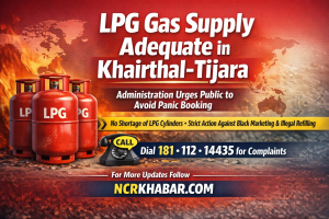 ncrkhabar@Khairthal-Tijara.जिले में एलपीजी गैस की उपलब्धता को लेकर फैल रही अफवाहों के बीच जिला प्रशासन ने स्पष्ट किया है कि घरेलू गैस की आपूर्ति पूरी तरह सामान्य है और किसी भी प्रकार की कमी नहीं है। प्रशासन ने आम उपभोक्ताओं से अपील की है कि वे घबराकर पैनिक बुकिंग या गैस सिलेंडरों का अनावश्यक भंडारण न करें।
